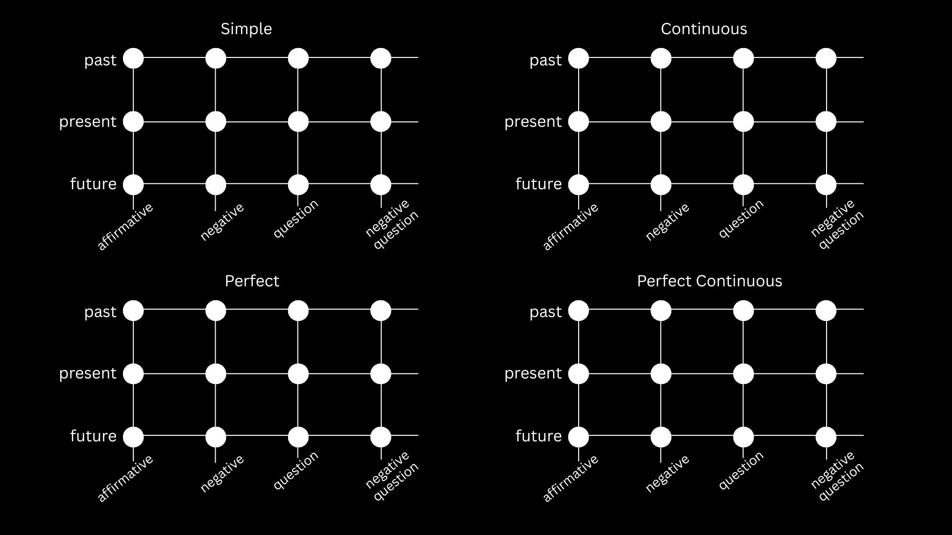 The four groups of dots represent the four sets of tenses.